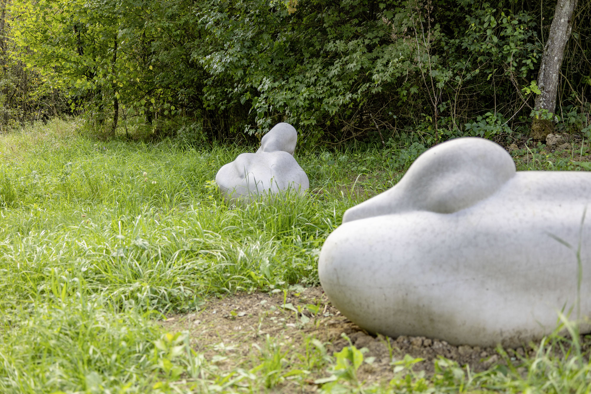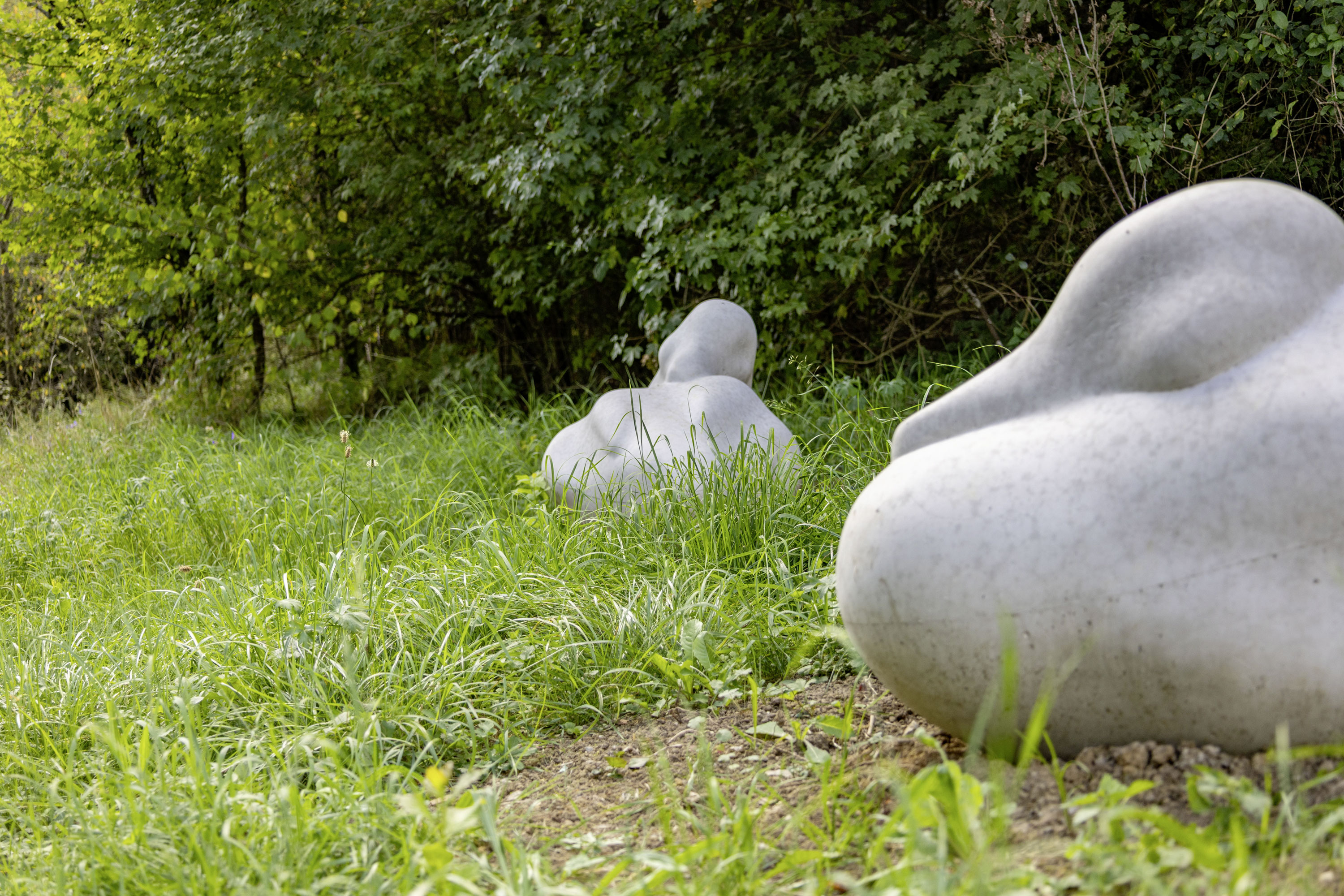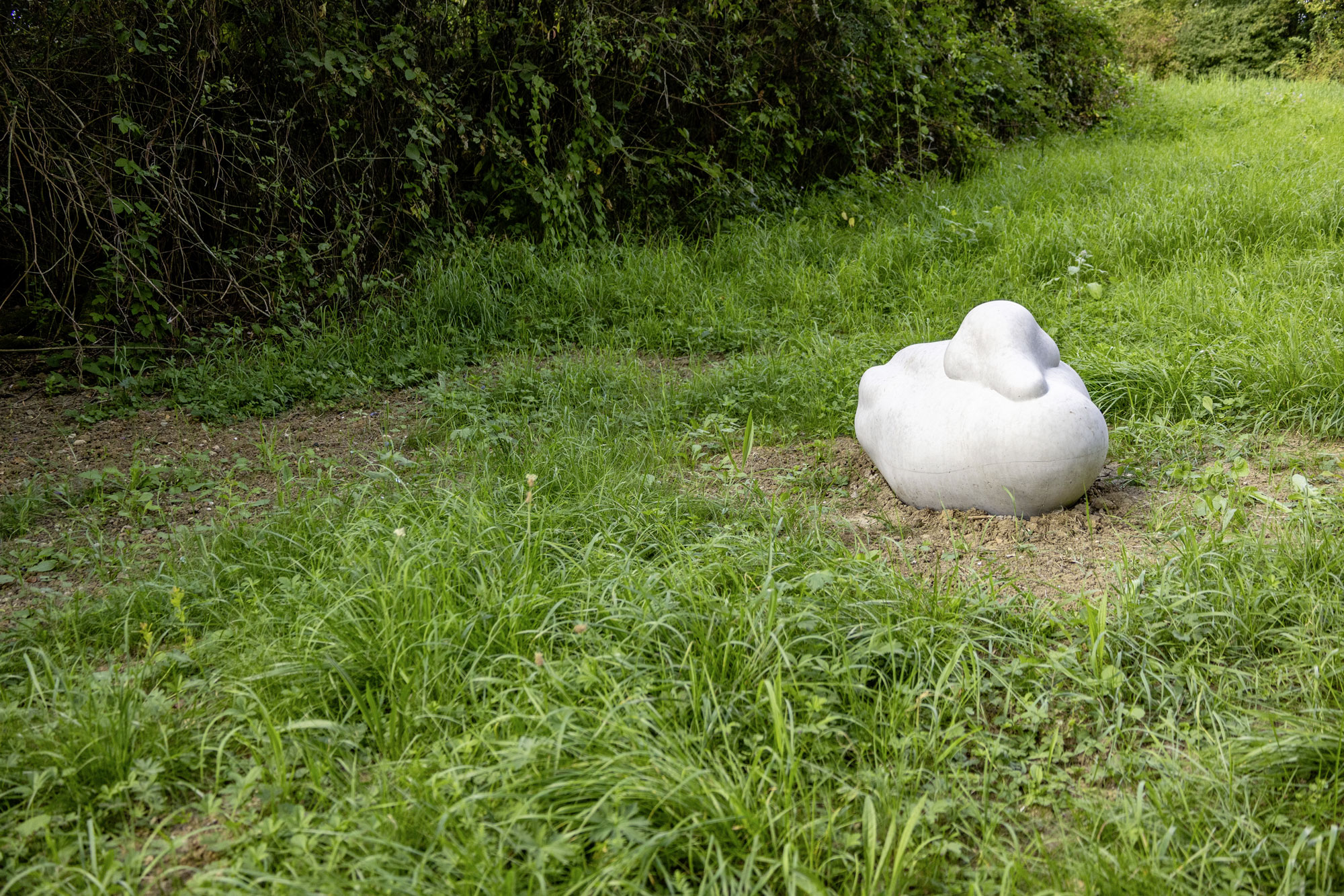In der Nähe der Kirnau, beim Ortsausgang Rosenberg, sind zwei Figuren zu finden, die wie Enten im Gras da liegen. Hier war zuvor die Skulptur Luftschicht am Ufer.