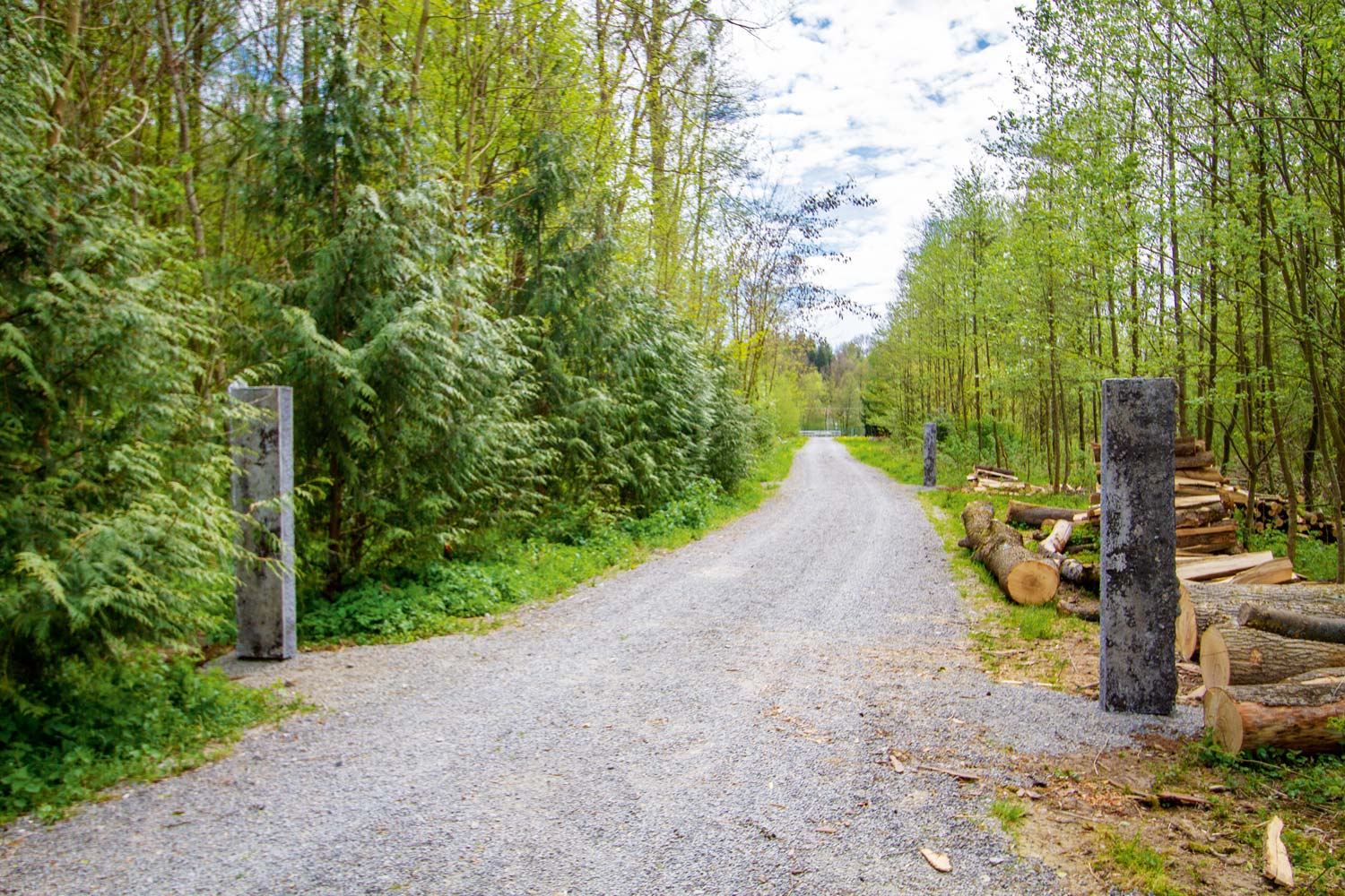 Ab einer gewissen Größe hat ein Stein eine andere Erfahrbarkeit, wir nehmen seine Präsenz verändert wahr. So erlangen die wuchtigen Stelen von „Sculpture for the road“ eine eigene Präsenz im Raum. Mit diesem Phänomen spielt Nino Maaskola ganz bewusst: Die klaren Formen der Güsse säumen den Radweg, ihre Größe lässt sie wie ein Tor in eine andere Welt wirken. Hat der Besucher dieses erste Tor passiert, sieht er sich einem zweiten gegenüber.